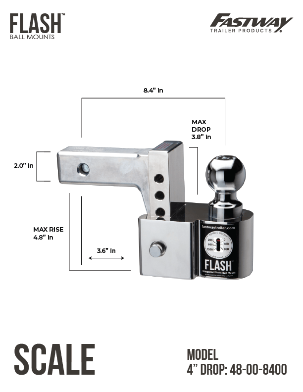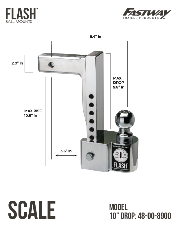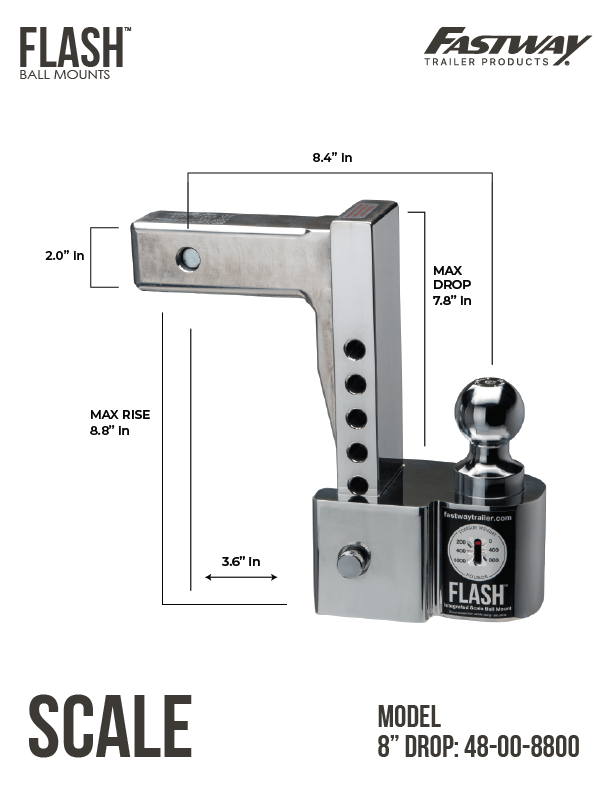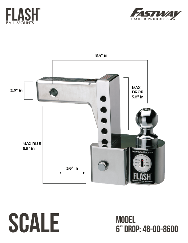 Proper tongue weight is one of the most important factors for safe, stable towing—too little can cause dangerous sway, and too much can overload your hitch or vehicle. The FASTWAY FLASH SCALE™ Adjustable Ball Mount takes the guesswork out of towing by showing you your trailer’s tongue weight in real time with its built-in mechanical scale. In just seconds, you’ll know if your load is balanced correctly, giving you the confidence of a safer, smoother tow. With this instant feedback, you can adjust your cargo before you hit the road, protecting your trailer, your vehicle, and your family.
