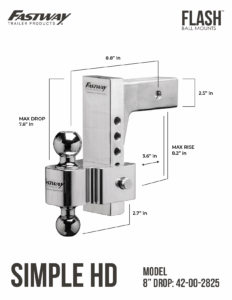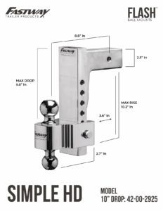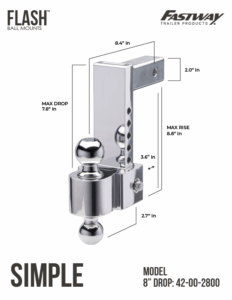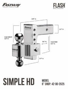 The FLASH SIMPLE Ball Mount is a fixed, solid aluminum mount available in multiple drop sizes like 4″, 6″, 8″, and 10″, designed for straightforward towing with a clean, polished look. Next is the FLASH SIMPLE HD Ball Mount, built with the same styling but engineered for heavier-duty use, ideal for trucks or trailers that need higher weight capacity. Then there’s the FLASH SECURE Ball Mount, which includes integrated dual locking pins to help deter theft while maintaining the same sleek appearance and adjustable drop height options.