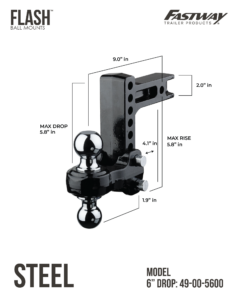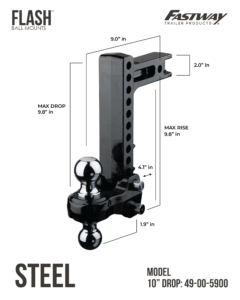 The FASTWAY FLASH STEEL™ Adjustable Ball Mount is built for maximum strength and reliability, giving you the confidence to tackle even the toughest towing jobs. Made from forged steel with a corrosion-resistant finish, it’s engineered for long-lasting durability in the harshest conditions. With dual integrated 2″ and 2-5/16″ hitch balls, switching between trailer sizes takes only seconds, and the quick pin system makes height adjustments fast and tool-free. Designed to fit your 2″ receiver, the Flash Steel offers 6 and 10″ drop models to perfectly match your truck and trailer setup. Rated for 12,0000 lb with the the 2-5/16″ ball, it delivers the raw towing power serious haulers demand—all in one heavy-duty, easy-to-use package.